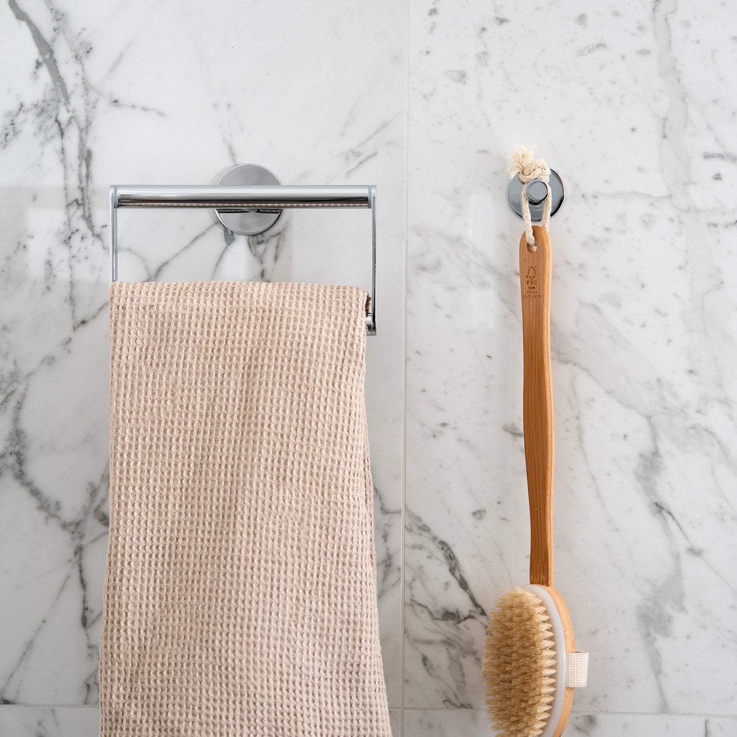 Create a hotel-like atmosphere in your bathroom. The towel ring is a bathroom accessory that adds an extra touch of luxury and design to your bathroom. Style it together with the corresponding products in the bathroom series or as a standout element in the bathroom.